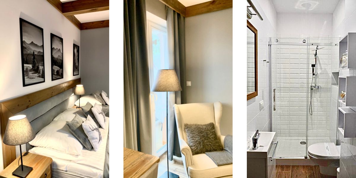 Praktyczny i wygodny pokój dla trzech osób wyposażony jest w zestaw do parzenia kawy i herbaty, lodówkę, wygodne łóżko podwójne oraz dodatkowe łóżko pojedyncze.