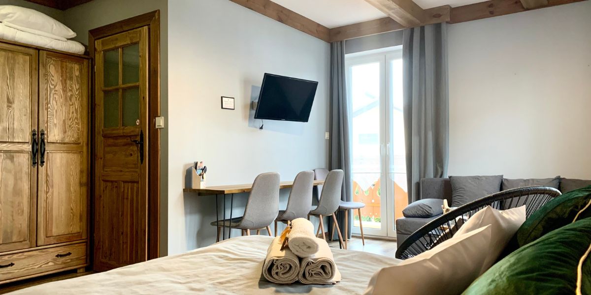 Przestronny pokój oferuje wygodne łóżko oraz miejsce do relaksu z fotelem i stolikiem. Znajduje się w nim także rozkładana sofa, która może służyć jako dodatkowe łóżko dla trzeciej osoby. Pokój posiada prywatną łazienkę, balkon oraz lodówkę.
