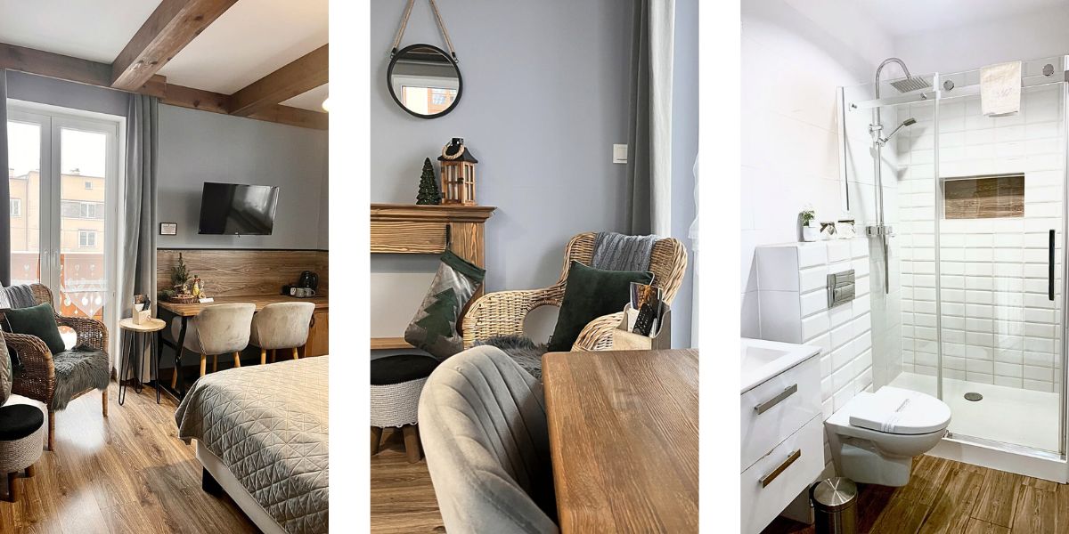 Pokój posiada łazienkę z prysznicem, do dyspozycji gości jest również prywatny balkon z widokiem na oddaloną małą i dużą Czantorię. Żelazko jest dostępne na każdym piętrze.
