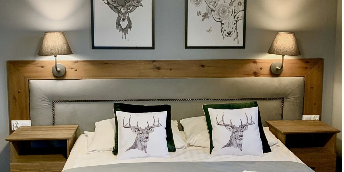 Komfortowy pokój dwuosobowy wyposażony jest w zestaw do parzenia kawy i herbaty, lodówkę, wygodne dwuosobowe łóżko oraz przestronną szafę.